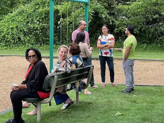 From the left: Yenny Su, Champagne Lawrence, Chanakya Mothukuri, Giles Davis, Dave Boland, Ashwin Kumar and Shirin Bansal for their efforts on cleaning the community roadways after a severe storm impacted the main entrance and walkways on Saturday, September 6.
