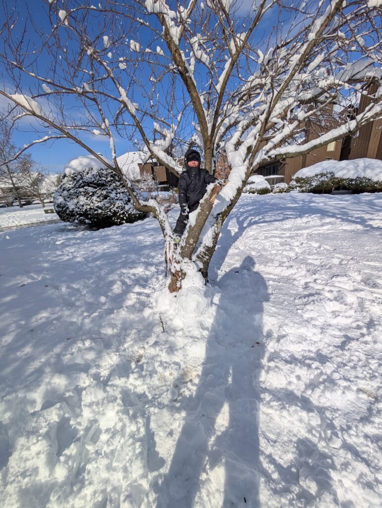 These residents thoroughly enjoyed their snow day building snowmen and climbing in snowy trees.